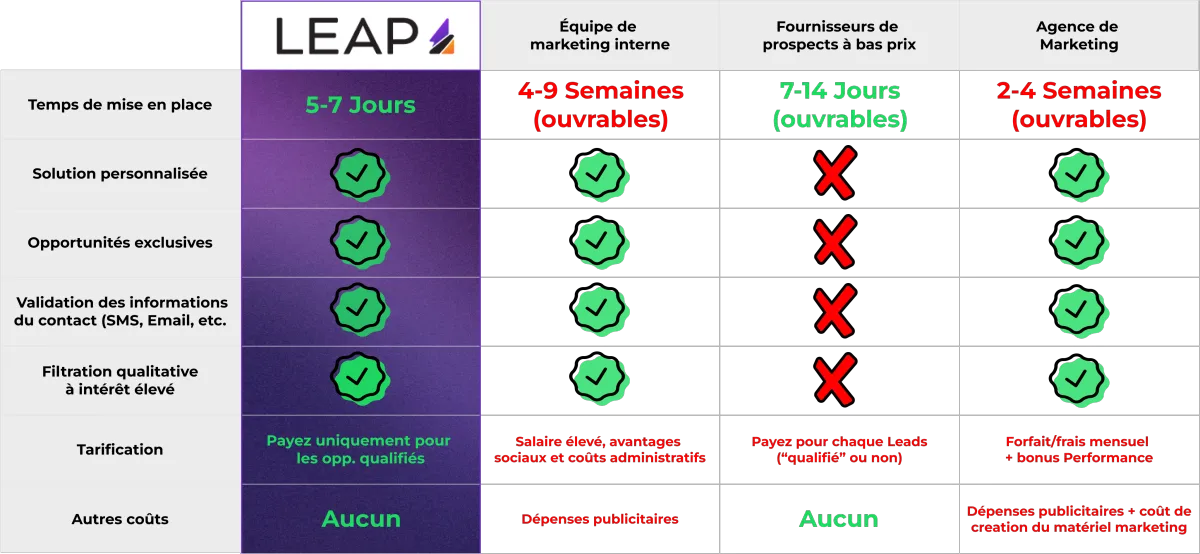 Obtenez des opportunités qualifiés livrées en 5-7 jours.